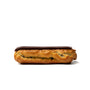 L'incontournable éclair : coque de pâte à choux remplie de crème pâtissière au chocolat noir et recouverte d'un glaçage au chocolat noir brillant.